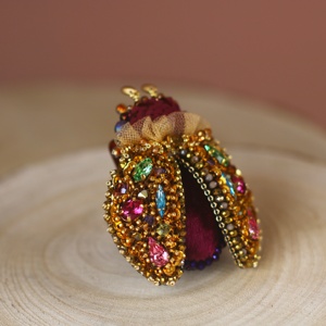 Treasury beetle brooch, gold purple burgundy, colorful crystals